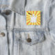 Botão de fantasma Trumpy fofo radiante. Este adorável fantasma está sobre um fundo de raios laranja e amarelos.
