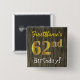 Bóton Quadrado 5.08cm Faux Wood, Faux Dourado 62º Aniversário + Nome Per