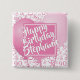 Bóton Quadrado 5.08cm Feliz aniversario - rosa/branco do teste padrão do