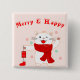 Bóton Quadrado 5.08cm Feliz de Gato Bonito e Feliz | Botão de Natal boni