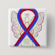 A causa de reconhecimento da Fibrose Pulmonar usa uma fita vermelha e azul de reconhecimento. O pino da fita de reconhecimento apresenta a arte do anjo da fita de reconhecimento azul e vermelho em um pingente de botão personalizado. O anjo de conscientização anota "Consciência da Fibrose Pulmonar". Os pinos ou botões de lapela de fita de anjo de consciência azul e vermelha podem ser personalizados com mensagens personalizadas para fazer botões de causa de excelente para pendentes de arrecadação de fundos, presentes de pinos de conscientização, ou outros eventos especiais de pendant ou pinos de lapela de conscientização para as ocasiões da causa.