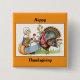 A imagem colorida de uma garota peregrina com um peru com a mensagem "Feliz Dia de Ação de Graças", aparece neste Pino do Botão de Férias. Isso daria um presente excelente para o Dia de Ação de Graças ou se vestiria!