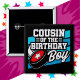 Esta design de hóquei é perfeita para o primo na festa de aniversário do tema de hóquei de um menino. Excelente de festa de aniversário para crianças que adoram jogar hóquei, assistir hóquei ou futuros jogadores de hóquei! Apresenta um gráfico de disco de hóquei para a festa de aniversário de hóquei de um menino.
