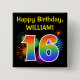 Bóton Quadrado 5.08cm Fireworks divertido + Rainbow Pattern "16" Anivers