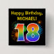 Bóton Quadrado 5.08cm Fireworks divertido + Rainbow Pattern "18" Anivers