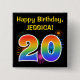 Bóton Quadrado 5.08cm Fireworks divertido + Rainbow Pattern "20" Anivers