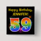 Este design de botão vibrante e divertido apresenta um padrão inspirado em fogos de artifício celebratórios coloridos, juntamente com o número "59", que inclui um espectro de inspiração multicolorido no arco-íris ou um padrão de gradiente. Ele também apresenta um nome personalizado e uma mensagem de evento, como uma saudação de aniversário de "Parabéns". Um botão como este pode ser vestido pelos participantes numa festa de aniversário que se realiza para celebrar o cinquenta nono aniversário de alguém. [~Z0000334]