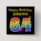 Bóton Quadrado 5.08cm Fireworks divertido + Rainbow Pattern "64" Anivers