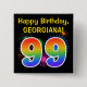 Esta design de botão vibrante e divertida apresenta um padrão colorido inspirado em fogos de artifício comemorativos que explodem, juntamente com o número "99", tendo um espectro de inspiração multicolorido no arco-íris ou um padrão de gradiente. Ele também apresenta um nome personalizado e uma mensagem de evento, como uma saudação de aniversário de "Parabéns". Um botão como este pode ser vestido pelos participantes numa festa de aniversário que se realiza para celebrar o 99º aniversário de alguém. [~Z0000334]
