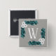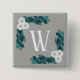Bóton Quadrado 5.08cm Flores Brancas Modernas e Monograma Foliar