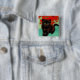 Botão com um gato preto e flores vermelhas no estilo Van Gogh! Este gatinho bonito é adoravelmente apresentado com flores vermelhas. Um presente fabuloso para amantes de gatos e colecionadores de arte holandeses!