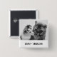 Adicione sua própria foto e texto para criar um pequeno presente de fotos. Este botão ou pino em forma quadrada está pronto para ser personalizado com sua foto e seus próprios nomes ou mensagem em caracteres de estilo de máquina de escrever em preto em apuros. O estilo preto e branco simples e moderno parece excelente com fotos em preto e branco ou coloridas. Mostre uma foto favorita dos seus animais de estimação, uma foto da família ou uma memória de férias.