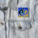 Botão com a pintura animal de Louis Wain Cat no Mar de Flores (1860-1939). Um gato preto e branco com olhos ouros cheira a flores amarelas. No fundo roxo estão flores azuis. Um presente maravilhoso para amantes de gatos e arte inglesa.