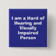The hard of hearing and visually impaired person blue button is a button for those with hearing and vision problems. It is simply designed with yellow writing on a blue background. It is a suitable gift for people with hearing and visual impairments.