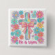 Bóton Quadrado 5.08cm "He is risen" Religious Cross Easter