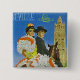 poster de viagens vintage para o Hotel Madrid, Sevila mostrando um casal flamenco tradicional contra a aranha catedral.