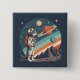 Bóton Quadrado 5.08cm Ilustração Cósmica do Astronauta Gato Retro no Esp