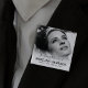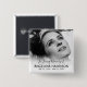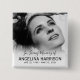 Botão funerário da lembrança com uma foto do seu ente querido perdido, as palavras "em memória amorosa de", o nome das pessoas e as datas de nascimento/morte.