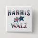 Botão democrata em apoio a Kamala Harris e Tim Walz para presidente e vice-presidente nas eleições presidenciais de 2024 nos EUA.