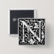 Bóton Quadrado 5.08cm Letra N Monograma Medieval Art Nouveau