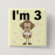 Bóton Quadrado 5.08cm Macaco sou três Camisetas de aniversário e present