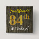 As características deste design quadradas simples do botão uma mensagem gostam de "aniversário FirstName do 84th! ", com "84th" tendo o falso/imitação ouro-como o olhar da coloração, no falso/fundo de madeira de imitação do teste padrão. O nome pode ser personalizado. Os botões como estes poderiam talvez ser vestidos por convidados em uma festa de aniversário para alguém que está comemorando seu quarto aniversário oitenta, onde o partido está sendo realizado em uma grande área com lotes de outras pessoas atuais (como um parque da cidade ou um parque temático). [~Z0000167]