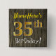 As características deste design quadradas simples do botão uma mensagem gostam de "aniversário NameHere do 35o! ", com "35o" tendo o falso/imitação ouro-como o olhar da coloração, no falso/fundo de madeira de imitação do teste padrão. O nome pode ser personalizado. Os botões como estes poderiam talvez ser vestidos por convidados em uma festa de aniversário para alguém que está comemorando seu trigésimo quinto aniversário, onde o partido está sendo realizado em uma grande área com lotes de outras pessoas atuais (como um parque da cidade ou um parque temático). [~Z0000167]