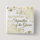 Identifique os principais intervenientes na sua festa de noivado, casamento ou jantar de ensaio com os nossos elegantes botões de folha falsa dourada. Concebido para combinar com a nossa Coleção de Casamento com Folha Dourada, este botão apresenta um floreio de folha falsa dourada sobre um fundo branco com texto dourado que diz Madrasta do Noivo e um espaço para inserir o nome dela. Perfeito como um favor ou presente para os membros do grupo de casamento.