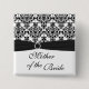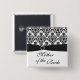 Bóton Quadrado 5.08cm Mãe preto e branco do damasco do Pin da noiva