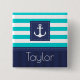 Bóton Quadrado 5.08cm Marinho Aqua Náutico Stripes Nome Personalizado
