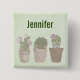 Botão de menina de aniversário com design. 3 cactos bonitos todos seguidos com rostos sorridentes sentados em uma floreira cada um vestindo algumas joias.