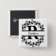 Bóton Quadrado 5.08cm Modern Black Floral Wreath Split Monogram "R"