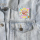 Bóton Quadrado 5.08cm Moldura Floral e Xadrez Foto Bebê Recém-Nascido