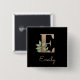 Bóton Quadrado 5.08cm Monograma Botânico Elegante Botão Letra E Dourada