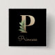 Bóton Quadrado 5.08cm Monograma Botânico Elegante - Botão Letra P Dourad