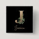 Bóton Quadrado 5.08cm Monograma Botânico Elegante - Letra J Dourada