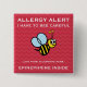 Alerta da alergia, eu tenho que botão cuidadoso do alerta da alergia de comida da "abelha". Os alérgenos da lista neste bonito bumble o pino do design da abelha. Personalize com nome ou o outro texto da "ao anexo do interior epinefrina" da nota às bolsas médicas, às bolsas seguras do petisco ou às bolsas de livro. O design pela alergia de Lil defende ww.lilallergyadvocates.com
