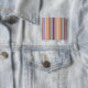 Adicione personalidade à sua roupa ou acessórios com este botão que apresenta um padrão de listras verticais brilhantes em tons pastéis e negros de vermelho, amarelo, rosa, verde e roxo. Perfeito para jaquetas, mochilas, chapéus ou sacos de tote, é uma maneira divertida de mostrar seu estilo colorido.