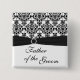 Bóton Quadrado 5.08cm Pai preto e branco do damasco do Pin do noivo
