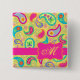 Bóton Quadrado 5.08cm Paisley Monograma Amarelo Rosa Quente Moderno
