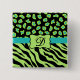 Bóton Quadrado 5.08cm Pele Negra, Verde limão e Turquesa Zebra e Chita