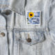 Fotografia e mensagem positivas ensolaradas do girassol. Este botão da retirada é decorado com uma fotografia do baixo ângulo de um único girassol de florescência antes de um céu em parte nebuloso. A indicação da tipografia adiciona uma nota positiva a uma imagem do divertimento. O botão redondo vem em cinco tamanhos.
