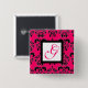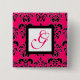 BÓTON QUADRADO 5.08CM PINK FUCHSIA DAMASK MONOGRAMA QUADRADA BRANCA
