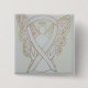 O pino de conscientização apresenta a pintura de um anjo branco de fita de reconhecimento em um pingente de botão personalizado. Os pinos ou botões de lapela de fita de anjo de consciência branca podem ser personalizados com mensagens personalizadas para fazer botões de causa de excelente para pingentes de arrecadação de fundos para canceres ou outras causas, presentes de pinos de conscientização, ou outros eventos especiais de pingentes ou pinos de lapela de consciência para as ocasiões da causa.