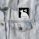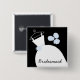 Bonito crachá de botões de tema noiva com um vestido estilizado de casamento e flores em tons de azul, preto e branco. Um design personalizável para você personalizar com seu próprio texto, imagens e ideias.