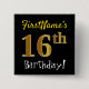 Bóton Quadrado 5.08cm Preto, Faux Dourado 16º aniversário, com nome pers