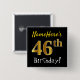 Bóton Quadrado 5.08cm Preto, Faux Dourado 46º aniversário, com nome pers