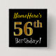 Bóton Quadrado 5.08cm Preto, Faux Dourado 56º aniversário, com nome pers