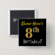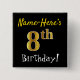 Bóton Quadrado 5.08cm Preto, Faux Dourado 8º aniversário, com nome perso