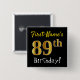 Bóton Quadrado 5.08cm Preto, Faux Dourado 89º aniversário, com nome pers